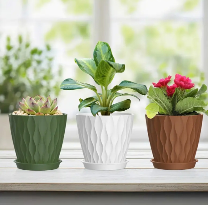 กระถางพลาสติกลายคลื่นน้ำขนาด 15.24ซม. พร้อมรูระบายน้ำ